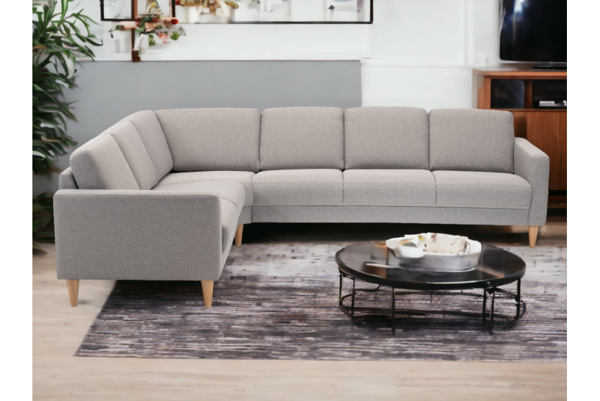 6 pers. hjørnesofa. Kraftig stof. Fås også læder.