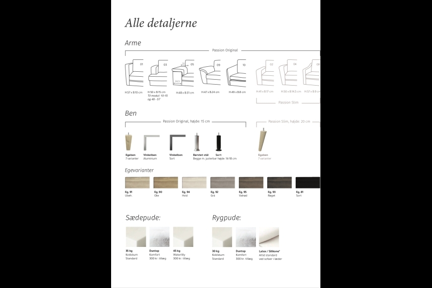 Passion modulsystem. Byg-Selv, med mange muligheder. Byggesystem med et højt kvalitets niveau, hvor kvalitet, design og siddekomfort går hånd i hånd. Behandler man sin sofa korrekt, er det en sofa, med lang levetid.
