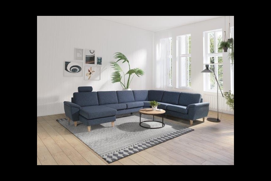 Den viste hjørnesofa / u-sofa står i stof 2 altid høj kvalitet af stof. Dette er PASSION Original, med det 15 cm ben og det klassiske forkant udtryk. Sofaen er vist med massive egeben.