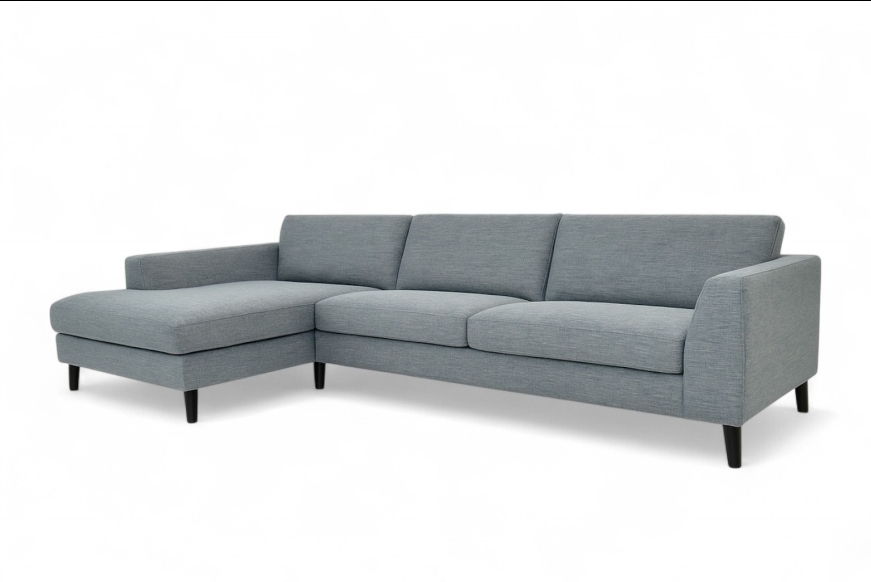 Elegant byggesystem. Sofa med kæmpe XL-chaiselong. Fås i mange typer stof og læder,