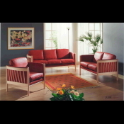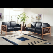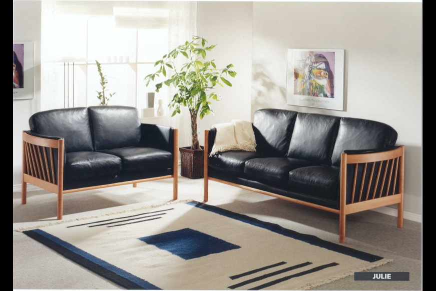 På billedet ses et 3 + 2 prs. Julie sofasæt, med sort læder, og bøge lak stel.