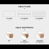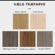 Bordet kan fås i mange forskellige behandlinger, vi har udvalgt 5 farver, som du kan vælge imellem her på hjemmesiden.