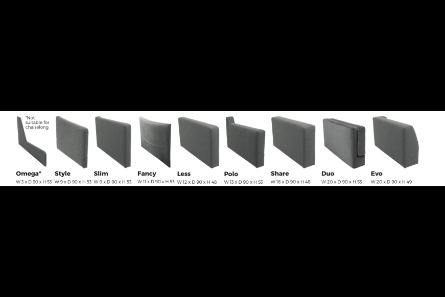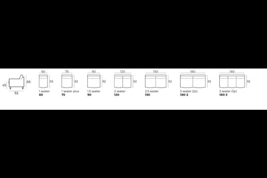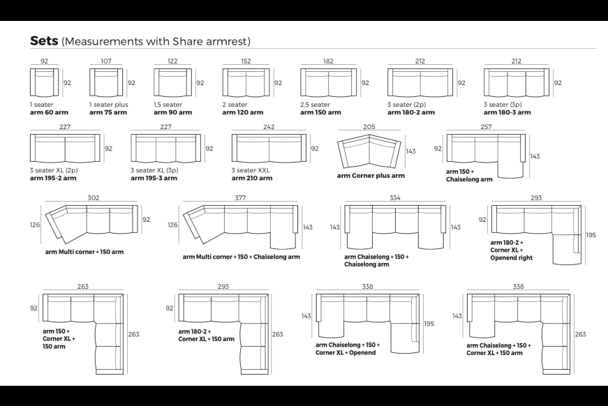 2-Sæde modul i enten 120, 150, 180 eller 210 cm bredde.