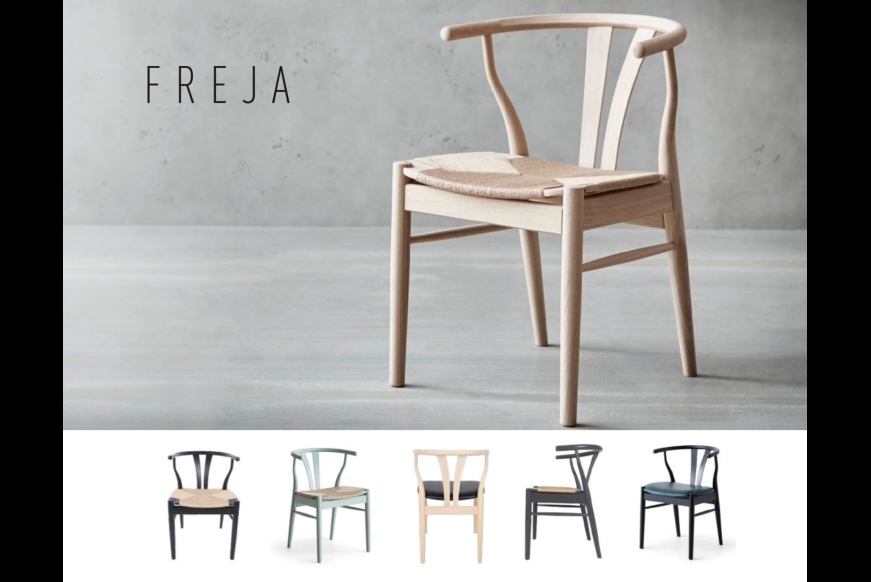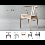Freja stolen, tegnet af arkitekt Poul Erik Jørgensen. Fås i flere træsorter og betræk på sædet.
