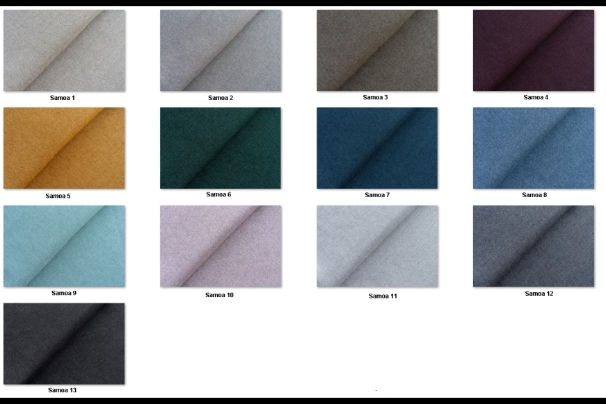Stof gr. 1: Happy, Samoa, Raquel, Vogue, Posso, Ontario, Leo, Luet, Aragon, Storm.