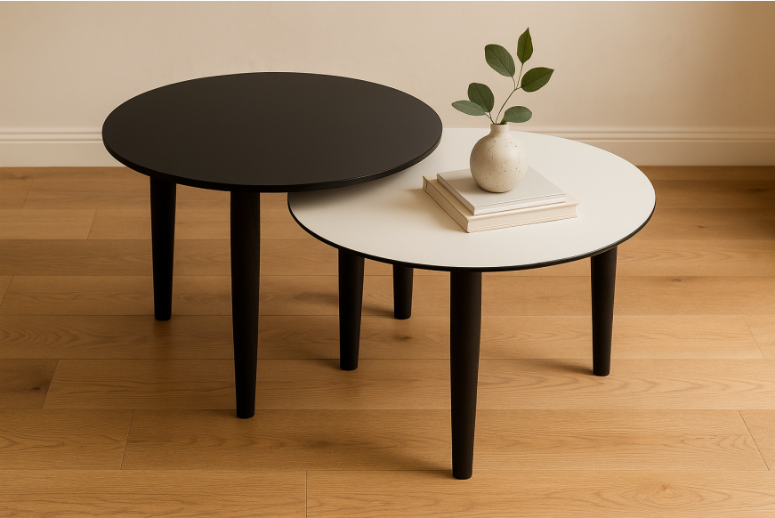Topplade: Sort laminat ( Ø 60 cm ) / Hvid laminat ( Ø 60 cm ) med sort kant
